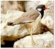 เป็นนกขนาดกลาง ยาวประมาณ 32 เซนติเมตร ปากยาวตรงสีแดง ปลายสีดำ หัวสีดำ มีแถบขาวที่หู มีติ่งเนื้อสีแดงตรงโคน ปาก คอหนาสั้นสีดำ ตัวป้อม ท้องและอกขาว ปีกตอนบนสีน้ำตาล ปลายสีดำและมีแถบขาวอยู่ระหว่างสีน้ำตาลและสีดำ มีเดือย แหลมที่หัว ปีกใช้ในการต่อสู้ หางสั้น โคนหางสีดำปลายขาว ขายาวสีเหลือง